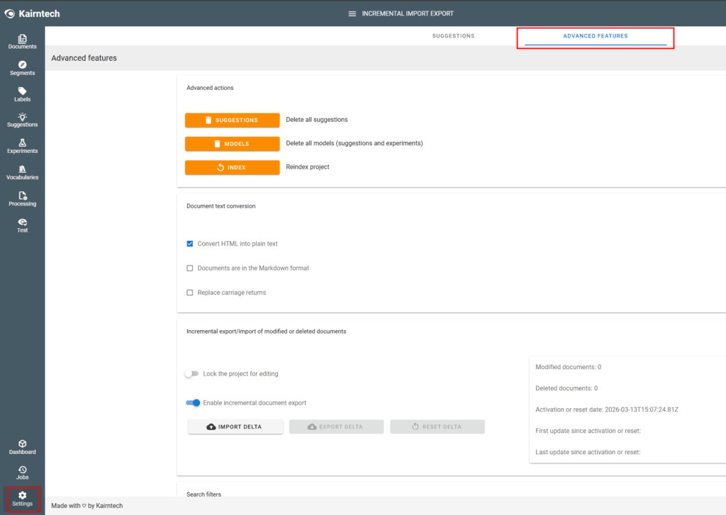 - Go down to the Search filters section