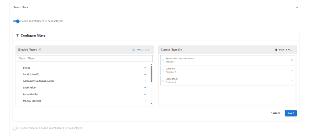 - You can choose which filters to display and their order of display